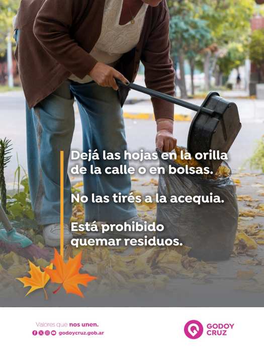 Así, la Municipalidad de Godoy Cruz invita a los vecinos a sumarse a este esfuerzo conjunto. De esta manera, pequeñas acciones cotidianas generan un impacto positivo en el entorno y mejoran la calidad de vida de toda la comunidad. Asimismo, se recuerda que se mantiene la prohibición de quemar residuos secos.