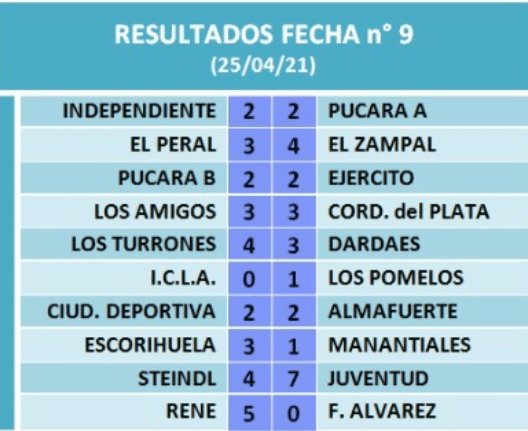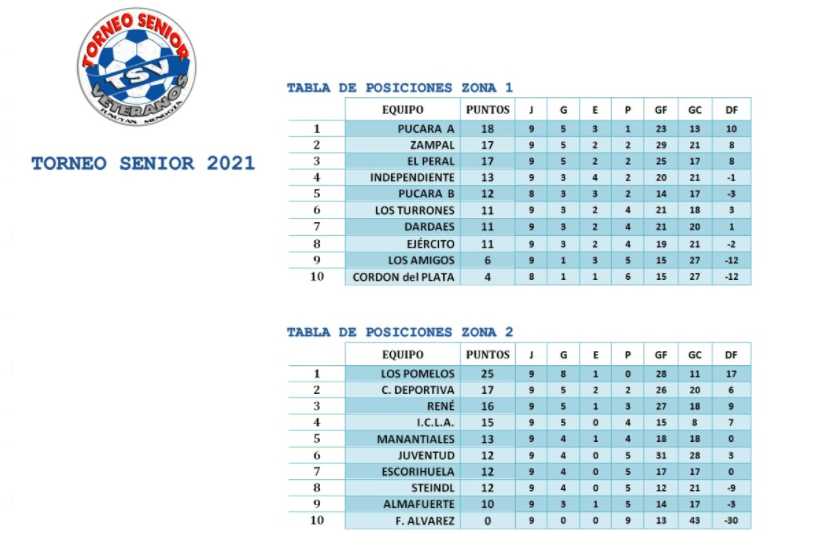 Torneo Senior 2021, con 9 fechas jugadas Los Pomelos y Pucará «A» siguen al tope de la tabla en cada zona Abr 25, 2021 En la mañana de éste Domingo se jugó la 9* fecha del torneo Senior 2021, con éstos resultados y las siguientes tablas de pocisiciones Compartí la noticia Enviar comentarioLo siento, debes estar conectado para publicar un comentario.